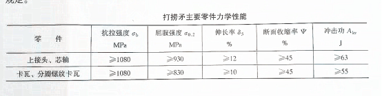 1、撈矛接頭、芯軸、卡瓦等主要零件力學(xué)性能表如下: