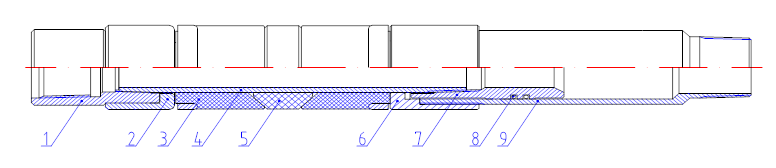 1、上接頭 2、頂膠環(huán) 3、長密封膠筒 4、中心管 5、短密封膠筒
